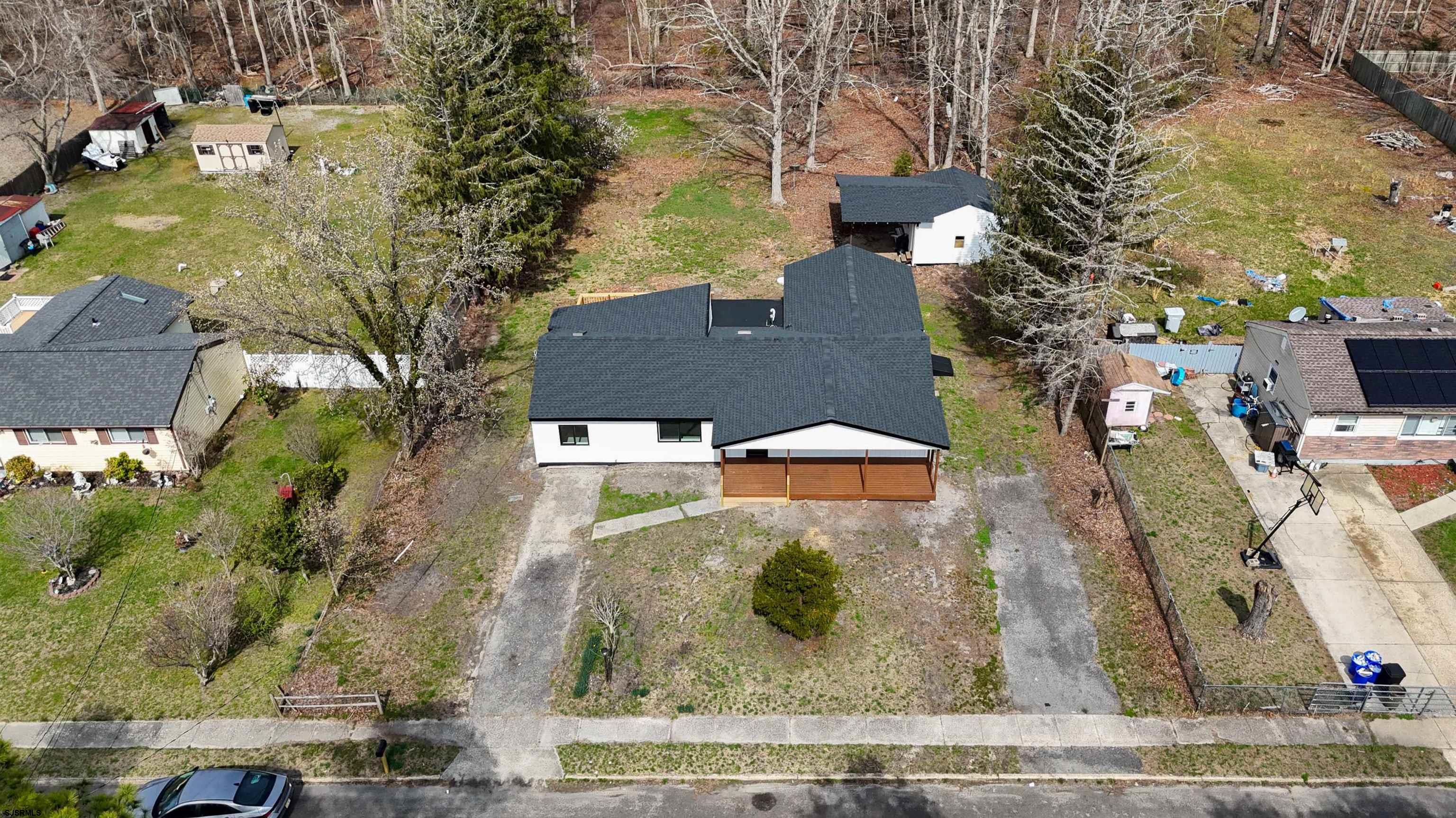Welcome to 3934 Patricia Ct, a stunningly renovated 5-bedroom, 2.5-bathroom home in Hammonton. This move-in-ready gem features a brand-new roof, new siding, and a spacious front porch. Inside, luxury vinyl plank flooring flows through a massive U-shaped kitchen complete with quartz countertops and a beautiful tile backsplash. Enjoy the modern touch of new solid core doors, custom tile bathrooms, and the comfort of central air. The exterior is designed for entertaining with a large rear deck overlooking a sprawling yard, along with a versatile detached workspace perfect for an office or man cave. For your peace of mind, the seller will provide both a septic certification and a well test.